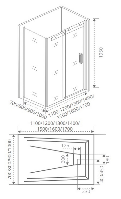 В комплекте: душевая дверь GALAXY WTW-160-C-B, боковая часть GALAXY SP-70-C-B.Дополнительно комплектуется: смеситель, сифон, поддон. |