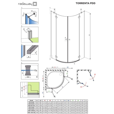 Душевая кабина Radaway Torrenta PDD 90x90 с распашной дверью 131600-01-01 из закаленного ударопрочного стекла.Свойства. Ширина входа-84 см. Для установки на поддон или непосредственно на пол. Безопасное закаленное стекло толщиной 6 мм. Стекло крепится к стене при помощи пристенных профилей с регулировкой. Латунные хромированные петли с подъемно-опускным механизмом гарантируют тихое открывание двери долговечную службу нижнего уплотнителя. Верхняя маскировочная крышка пристенного профиля. Уплотнители, устойчивые к изменению температуры и влаге. Магнитный уплотнитель обеспечивает герметичность кабины. Металлическая ручка. Антигрязевое покрытие стекла EasyClean. Душевая кабина Torrenta PDD 90x90 см 131600-01-01 для установки на поддон или непосредственно на пол. Возможен монтаж без планки порога. EasyClean. Антигрязевое покрытие стекла. Капли воды не удерживаются на поверхности стекла и стекают, не оставляя следа. Технология гарантирует эффективную и длительную защиту от коррозии, размножения бактерий и сохранение внешнего вида долгие годы при бережном уходе. Полимерный защитный слой в процессе обработки становится частью самого закаленного стекла, а не отдельно нанесенной пленкой на поверхность. Производство. 100% Польша. Компания Radaway один из ведущих европейских производителей душевых ограждений. Душевые кабины, двери и шторки на ванну завоевали популярность не только на рынках Европы и стран СНГ, но и во всем мире. Завод располагается недалеко от Познани. Качество. Продукция отвечает всем европейским и всемирным стандартам. Каждое изделие проходит многоэтапный контроль качества и разные испытания. Дизайн. Собственная команда инженеров-конструкторов и дизайнеров. Душевые ограждения Radaway позволяют оформить уникальный интерьер для ванной комнаты и предлагают нестандартные варианты. Множество размеров, цветов стекол и профилей, любые формы и самые смелые решения. Изображение и цвет на мониторе могут отличаться от оригинала. Комплектность: