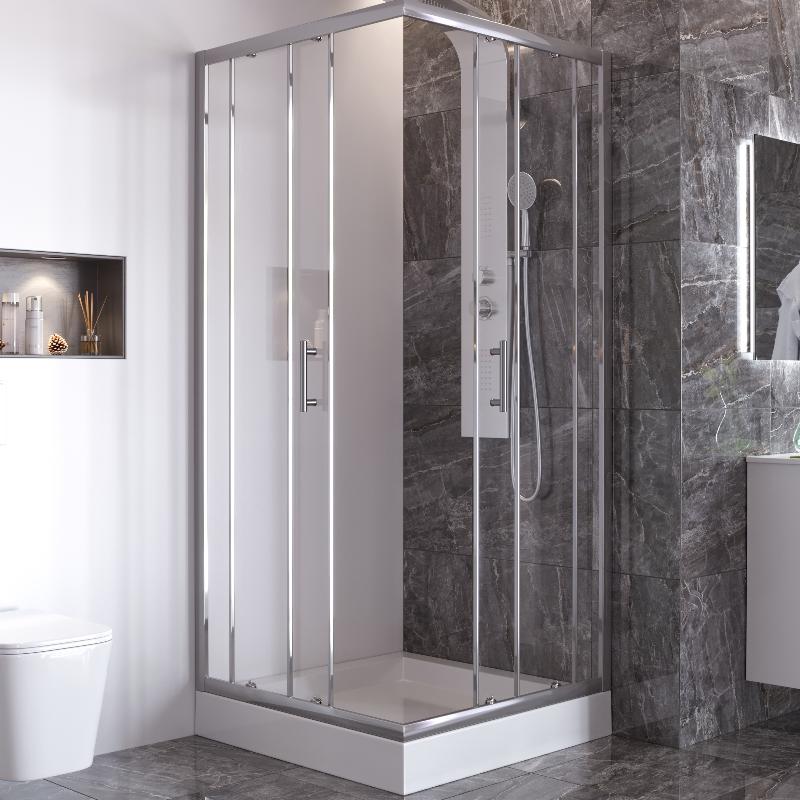 Душевой уголок Taliente TA-09092-1CP 90x90 см с дверями из закаленного ударопрочного безопасного стекла.Свойства. Верхние двойные и нижние двойные с кнопкой ролики для плавного и бесшумного хода дверей. Уплотнители и фурнитура в цвет профиля. Производство. Компания Taliente крупный производитель сантехники для ванных комнат из Италии. Современное ультраточное оборудование. Качество. Вся продукция отвечает официальным международным сертификатам. Изображение и цвет на мониторе могут отличаться от оригинала. Комплектность: