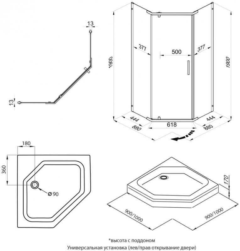 Душевая кабина Triton Дека Голд А1 90x90 с поддоном, пят., прозр.\золото, Щ0000073923. Все характеристики |