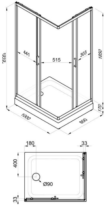 В комплекте: поддон низкий из акрила Senosan (Австрия), съемный экран, стальной оцинкованный каркас, сифон D90. |