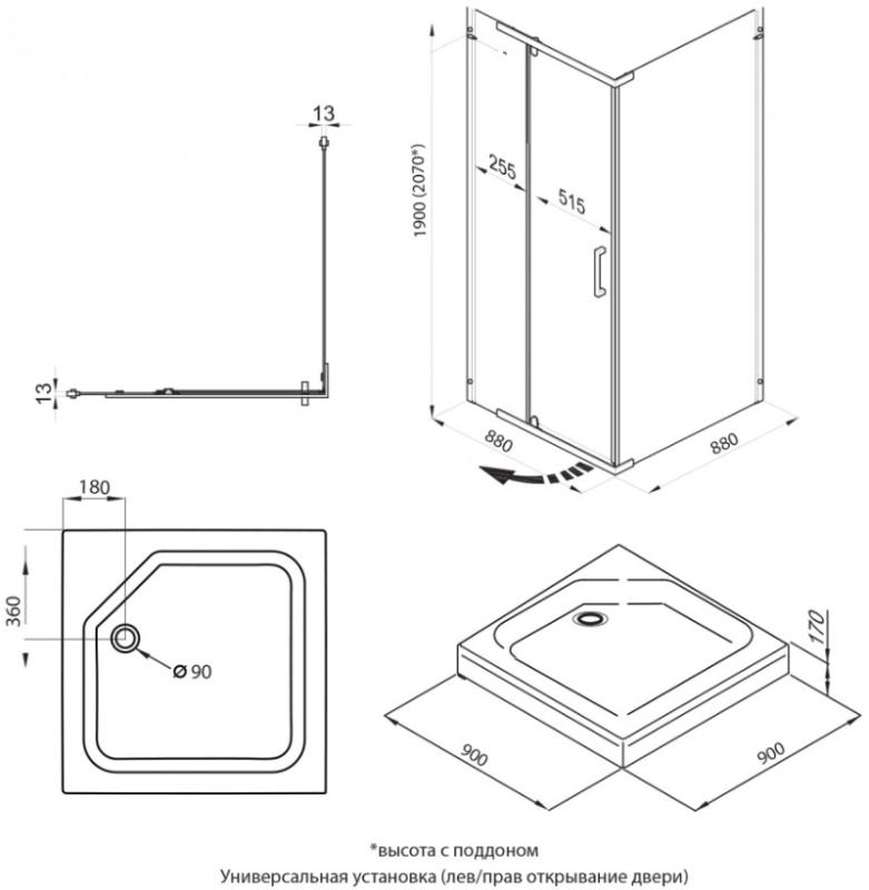 Душевая кабина Triton Терра Голд А1 90x90 с поддоном, кв., прозр.\золото, Щ0000073931. Все характеристики |