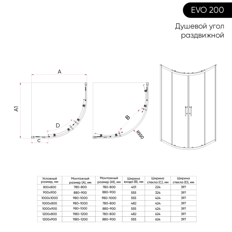 Душевая кабина Veconi Evo 200 B 100x100, угл., прозр.Easy Clean\черный. Все характеристики |