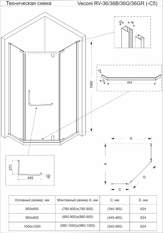 Душевая кабина Veconi RV-36G 90x90 пятиуг., прозр.\хром. Все характеристики |