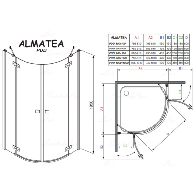 Душевой уголок Radaway Almatea Gold PDD/E 90х80. Все характеристики |