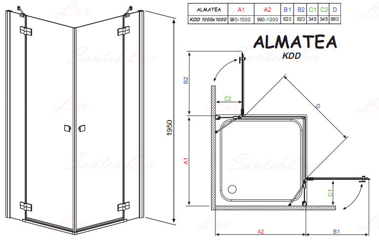 Душевая кабина Radaway Almatea KDD 100х100 интимато. Все характеристики |