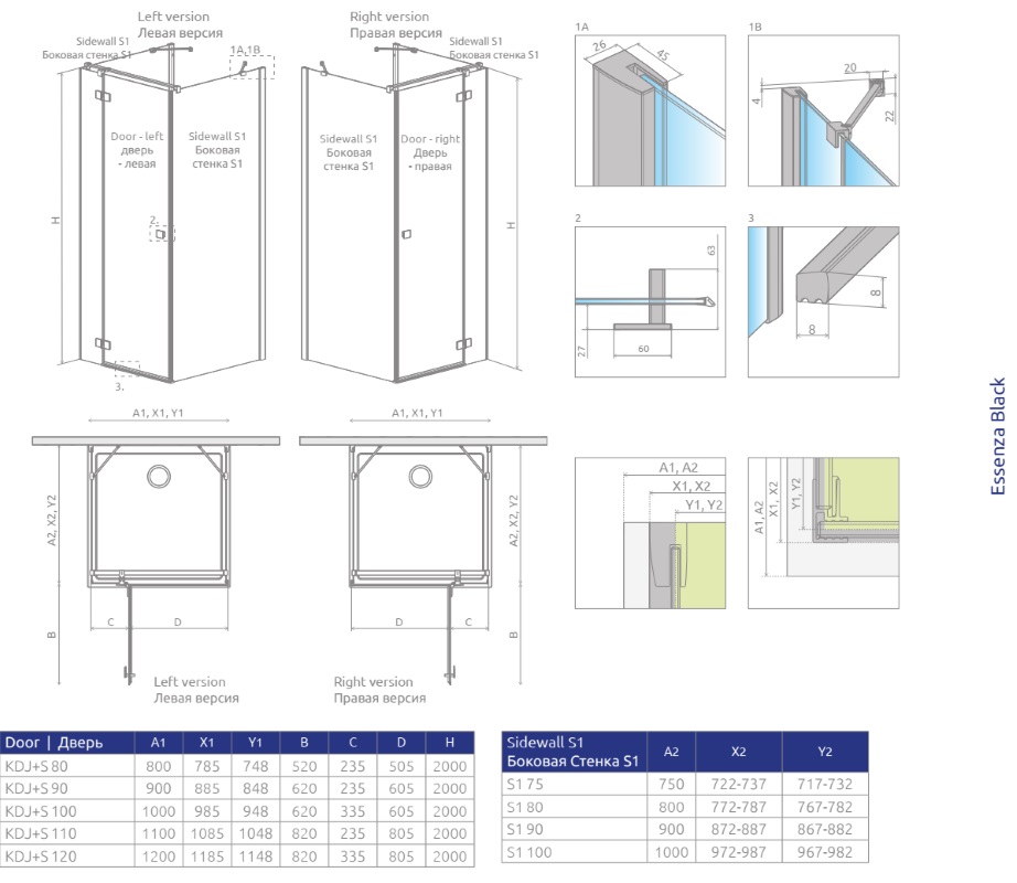 Душевая кабина Radaway Essenza New Black KDJ+S 80x75, левая. Все характеристики |