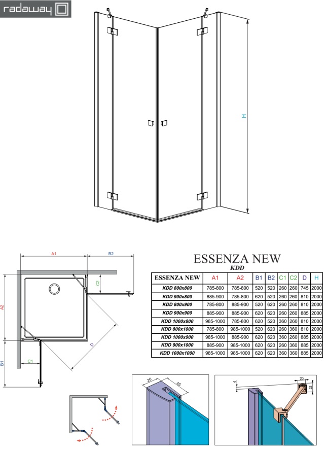 Душевая кабина Radaway Essenza New KDD 90x100, правая. Все характеристики |