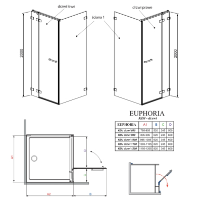 Душевой уголок Radaway Euphoria KDJ 100x90, левый 383612-01L+383240-01L+383050-01, с распашной дверью. Ширина входа-60 см. Для установки на поддон или непосредственно на пол. Безопасное закаленное стекло толщиной 8 мм. Дверь открывается наружу. Петля оснащена подъемно-опускным механизмом, который гарантирует тихое открывание двери и долгую службу нижнего уплотнителя. Стекла крепятся к стене при помощи металлических кронштейнов. Монтажные кронштейны изнутри вровень cо стенкой, что облегчает очистку стекол. Уплотнительный профиль из алюминия. Уплотнители, устойчивые к изменению температуры и влаге. Магнитный уплотнитель обеспечивает герметичность двери. Прочные алюминиевые стабилизаторы гарантируют стабильную конструкцию кабины. Антигрязевое покрытие стекла EasyClean. Изображение и цвет на мониторе могут отличаться от оригинала. Комплектность: