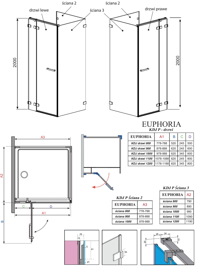 Душевая кабина Radaway Euphoria KDJ P 90x80, правая. Все характеристики |
