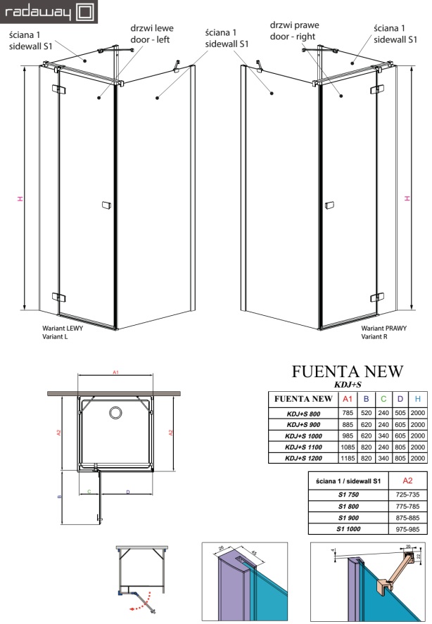 Душевой уголок Radaway Fuenta New KDJ+S 100x80 384022-01-01R+384051-01-01+384051-01-01, правый, с одностворчатой распашной дверью. Ширина входа-60.5 см. Для установки на поддон или непосредственно на пол. Безопасное закаленное стекло толщиной 6 мм. Латунная хромированная петля, оснащенная подъемно-опускным механизмом и системой позиционирования двери, гарантирует тихое открывание двери и долгосрочную службу нижнего уплотнителя. Пристенный профиль с регулировкой до 1 см. Петли изнутри вровень со стенкой, что облегчает очистку стекол. Магнитные уплотнители обеспечивает герметичность кабины. Уплотнители, устойчивые к изменению температуры и влаге. Внешняя маскировочная крышка пристенного профиля. Антигрязевое покрытие стекла EasyClean. Изображение и цвет на мониторе могут отличаться от оригинала. Комплектность: