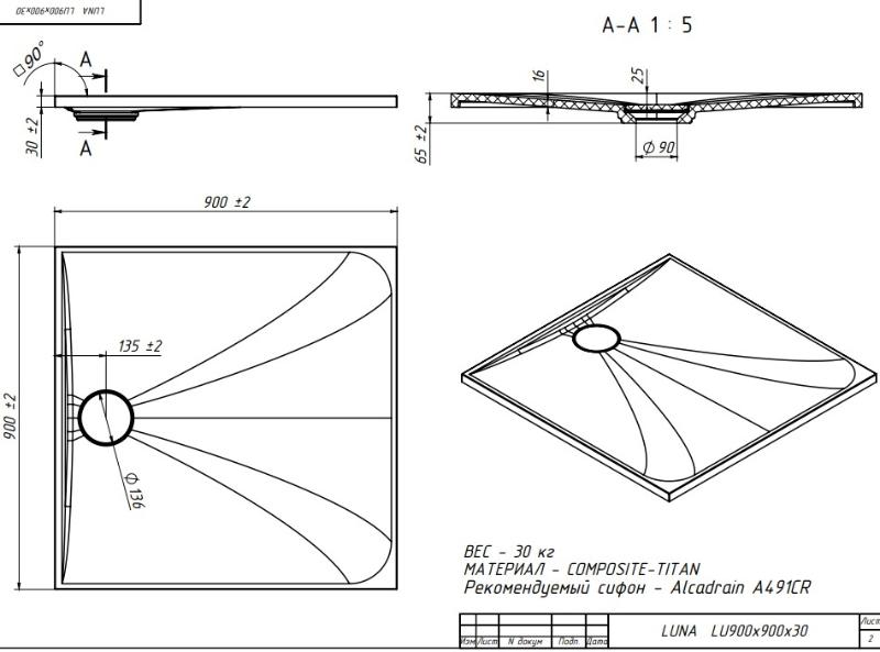Душевой поддон Belux Luna LU 90x90x3, белый матовый 18. Все характеристики |