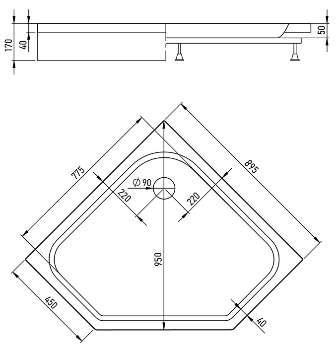 Душевой поддон Erlit AB 9017V 90x90x15. Все характеристики |