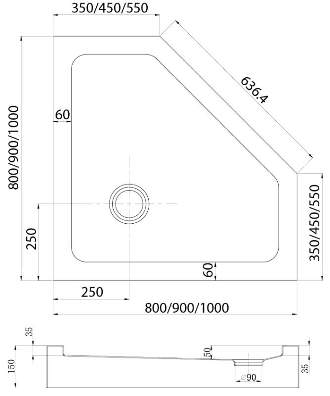 Душевой поддон Veconi TZ-53 90x90x15 угловой, пятиуг., черный. Все характеристики |