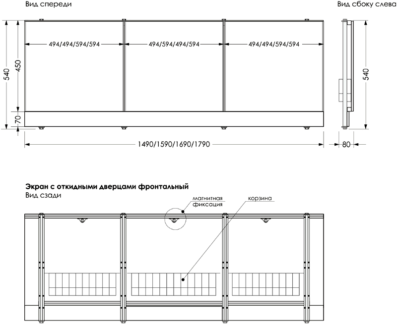 Экран под ванну Метакам 169 откидной. Все характеристики |