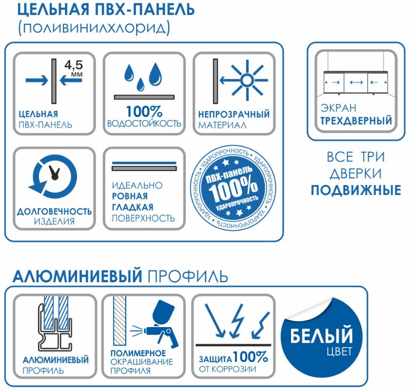 Экран под ванну Метакам Премиум А 168, благородная нейтральность N5 из ПВХ панели Plasticline с УФ-печатью и УФ-лакировкой, с тремя подвижными дверцами.Свойства. Экран под ванну Премиум А 168, рисунок "благородная нейтральность N5" обладает сверхпрочностью, жесткостью и 100% водостойкостью. УФ-лакировка с отверждением делает экран влагостойким и легким в уходе. Высота экрана регулируется с помощью четырех опорных ножек в пределах 56-60 см. Пластиковые ручки-клипсы. Полимерное окрашивание алюминиевого профиля защищает его от коррозии.