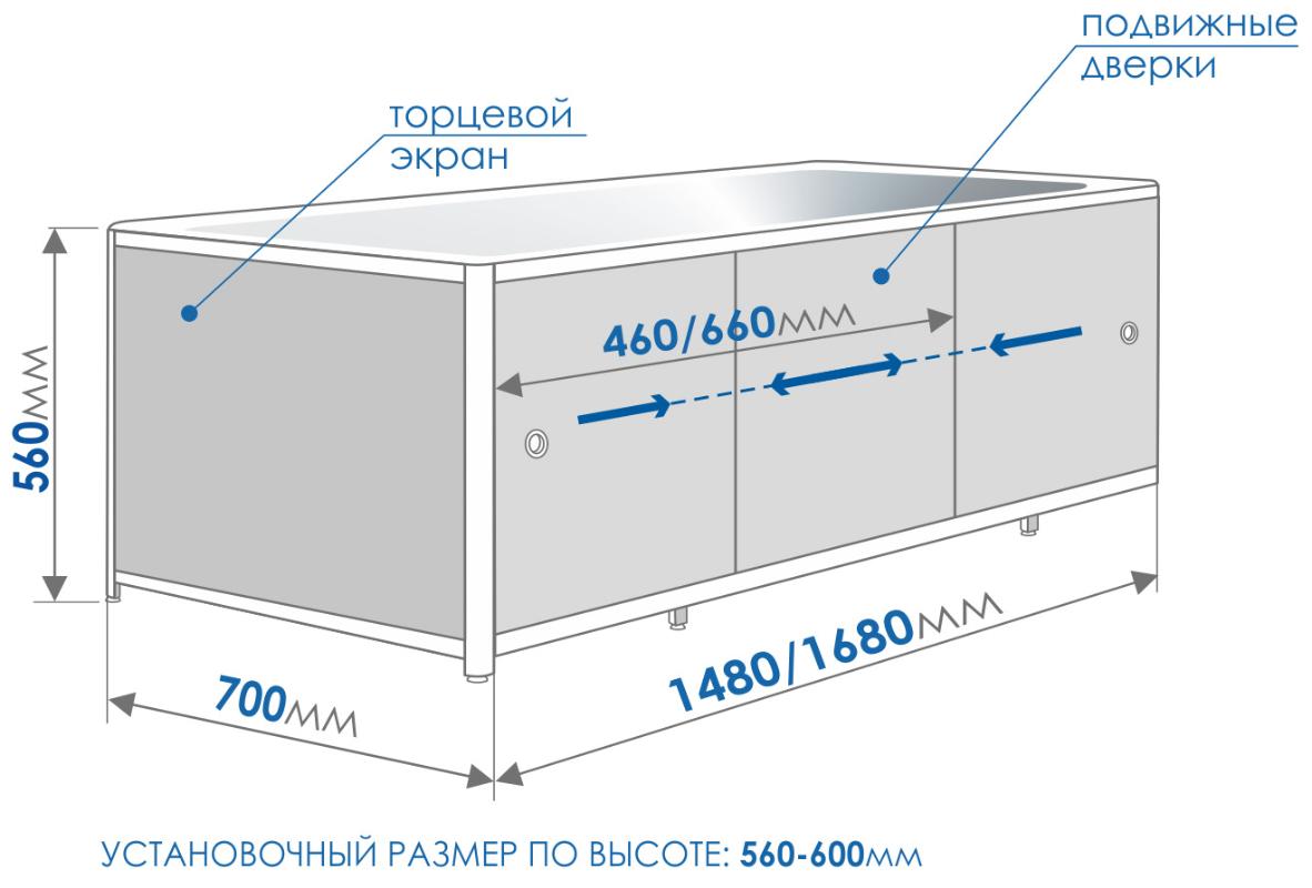 Экран под ванну Метакам Премиум-Арт 168, теплый песок. Все характеристики |