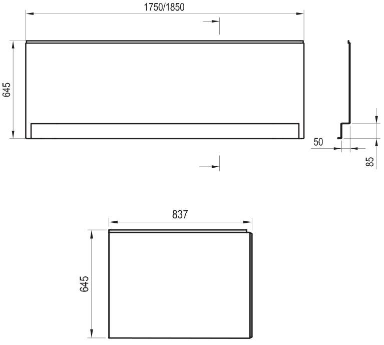 Длина: 185 см.Высота: 65 см. Цвет: белый. Комплектность: