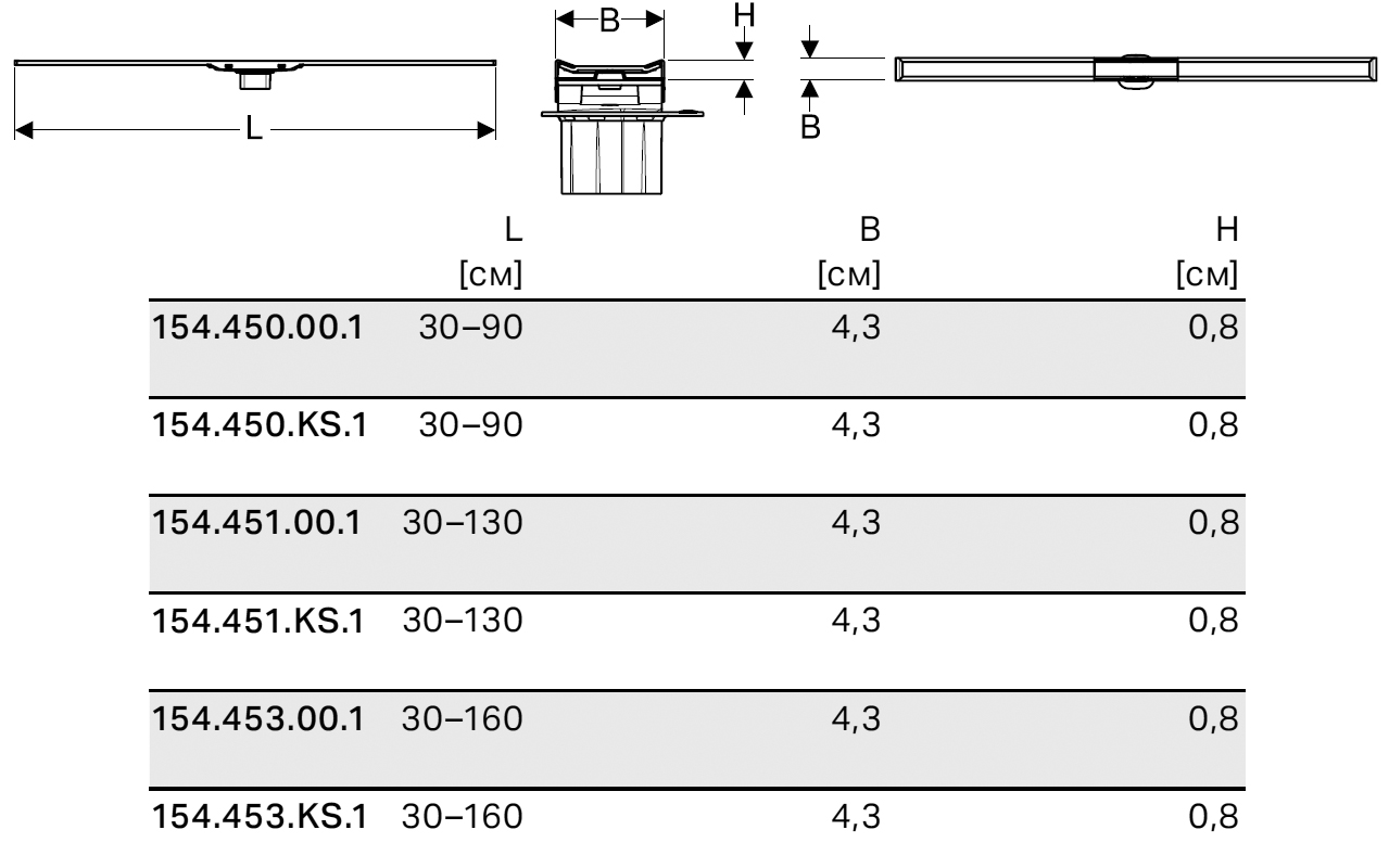 Решетка Geberit CleanLine20 154.451.00.1 для душевого лотка 30-160 см, сталь. Все характеристики |