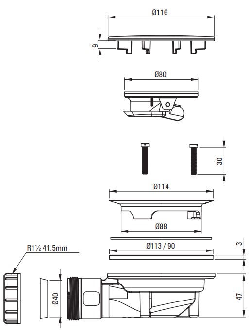 Для душевых поддонов со сливным отверстием 90 мм. |