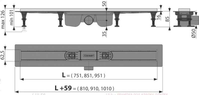 Душевой трап Alca APZ22-850 с решеткой Tile-850. Все характеристики |