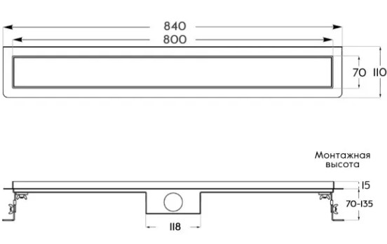 Душевой трап Axus Standart Tile 800 с решеткой, хром, tdst800. Все характеристики |