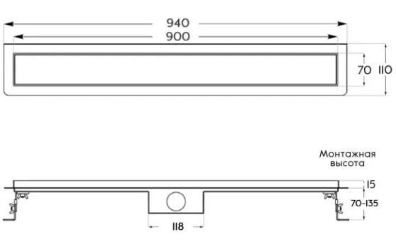 Душевой трап Axus Standart Tile 900 с решеткой, хром, tdst900. Все характеристики |