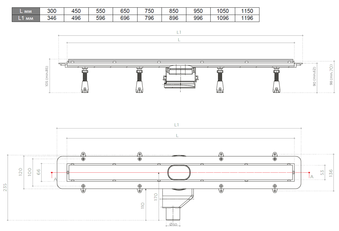 Душевой трап Pestan Confluo Frameless Line 850 13704105. Все характеристики |