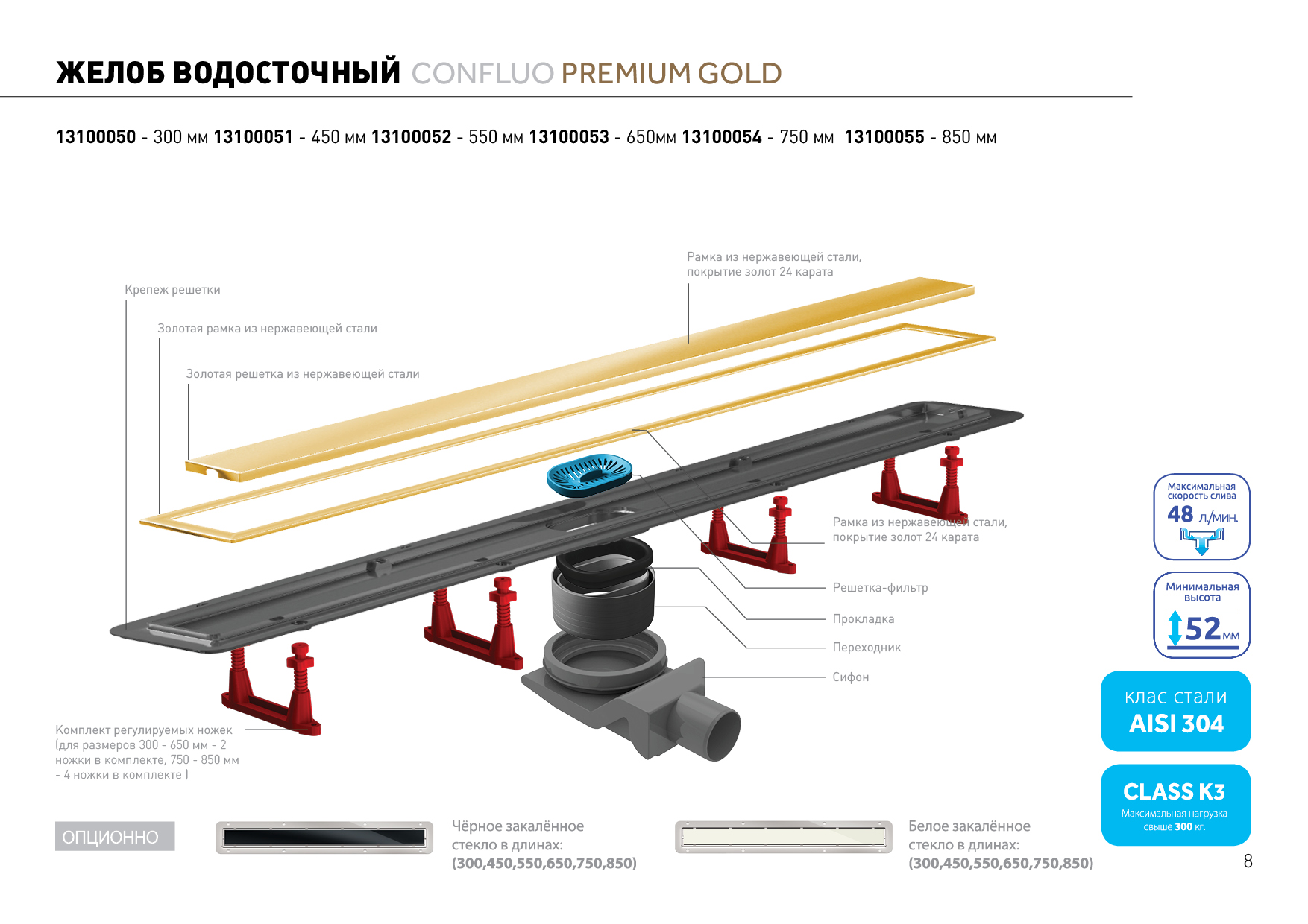 Душевой трап Pestan Confluo Premium Line 650 Gold 13100053. Все характеристики |