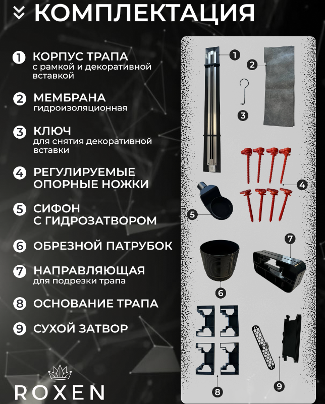 Линейный щелевой душевой трап Roxen Razor Gold 800 910100GB для подрезки.Производство. Компания Roxen основана в Финляндии. Благодаря современному оборудованию, инновационным технологиям и строгому скандинавскому подходу ее продукция заслуженно держится в топе продаж. Качество. Сантехника Roxen изготовлена только из проверенных, безопасных материалов. Каждое изделие проходит обязательную проверку на соответствие международным стандартам. Высокая надежность, безупречные линии и доступность делают изделия Роксен привлекательным выбором на любой вкус. Гарантия. Длительная гарантия - 25 лет. Изображение на мониторе может отличаться от оригинала. |