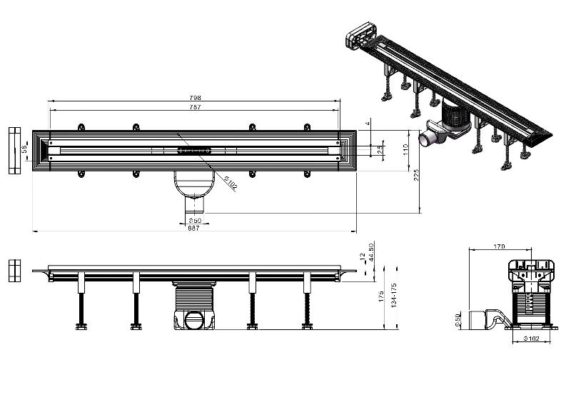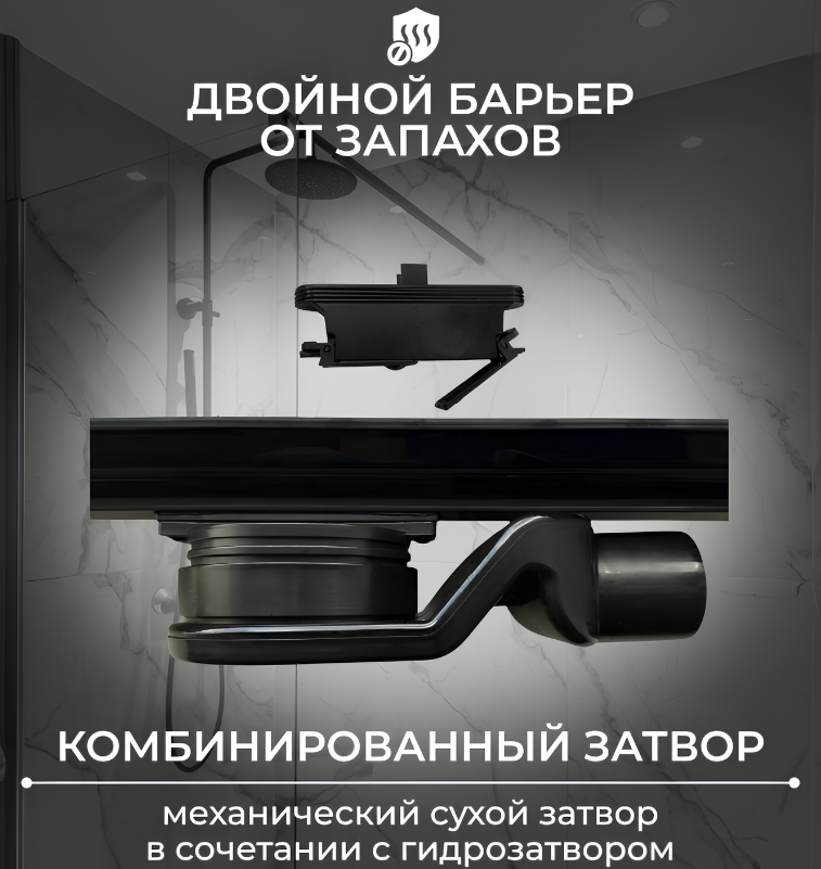 Душевой трап Roxen Razor Gun metal 800 910100GM подрезной, оружейная сталь. Все характеристики |