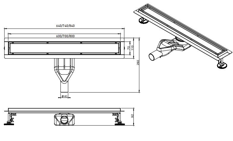 Душевой трап Ceramalux CL6138D-60 с решеткой, черный матовый. Все характеристики |