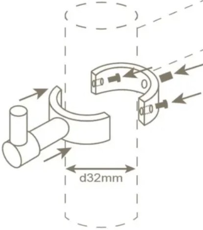 Установка. Подходит для любых типов полотенцесушителей из круглого профиля с диаметром трубы 32 мм (1"). Монтаж производится на подключенный полотенцесушитель. Разъемное кольцо позволяет установить крючок на любой удобной высоте.Свойства. Рабочая температура максимальная 100°C. Рабочее давление максимальное 10 атм. Изображение и цвет на мониторе могут отличаться от оригинала. Комплектность: