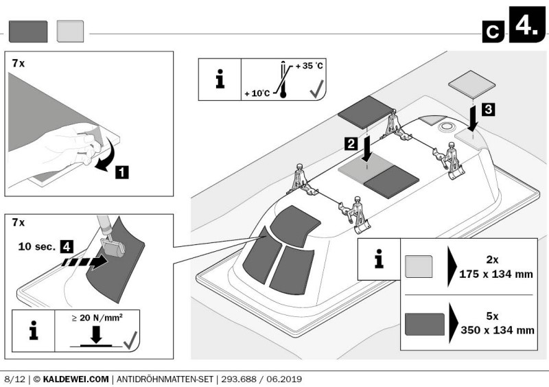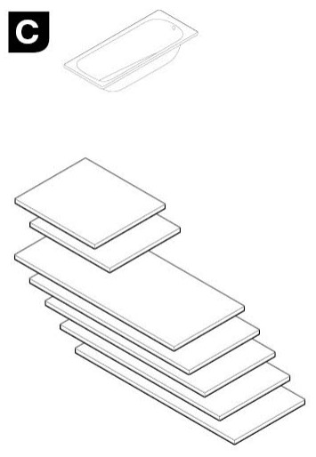 Комплект представляет из себя набор самоклеющихся резиновых пластин, для оклеивания внешней стороны ванной при ее установке. Данные пластины уменьшают вибрации материала ванны, способствуют звукоизоляции и способности ванной дольше сохранять температуру воды. Применяются для оклеивания любой стальной ванны. Комплектность: