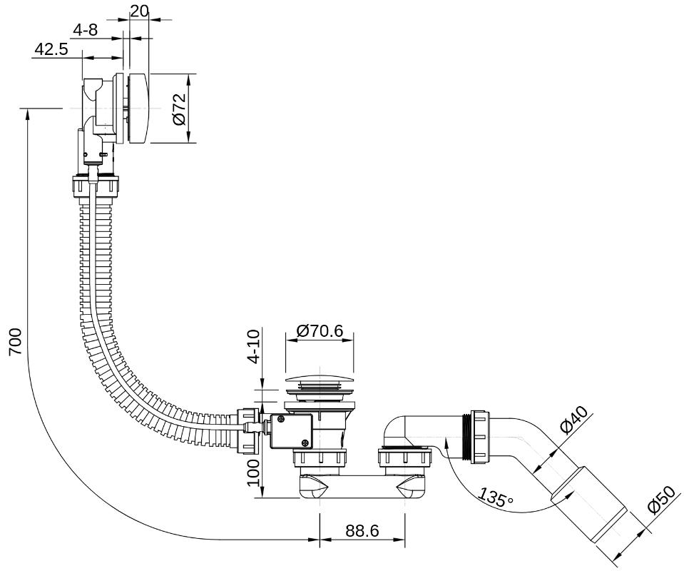 Сифон для ванны Roxen R70A-GM полуавтомат, оружейная сталь. Все характеристики |