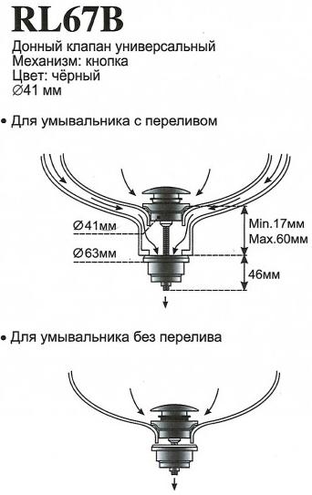Донный клапан Ledeme L67B универсальный, черный. Все характеристики |