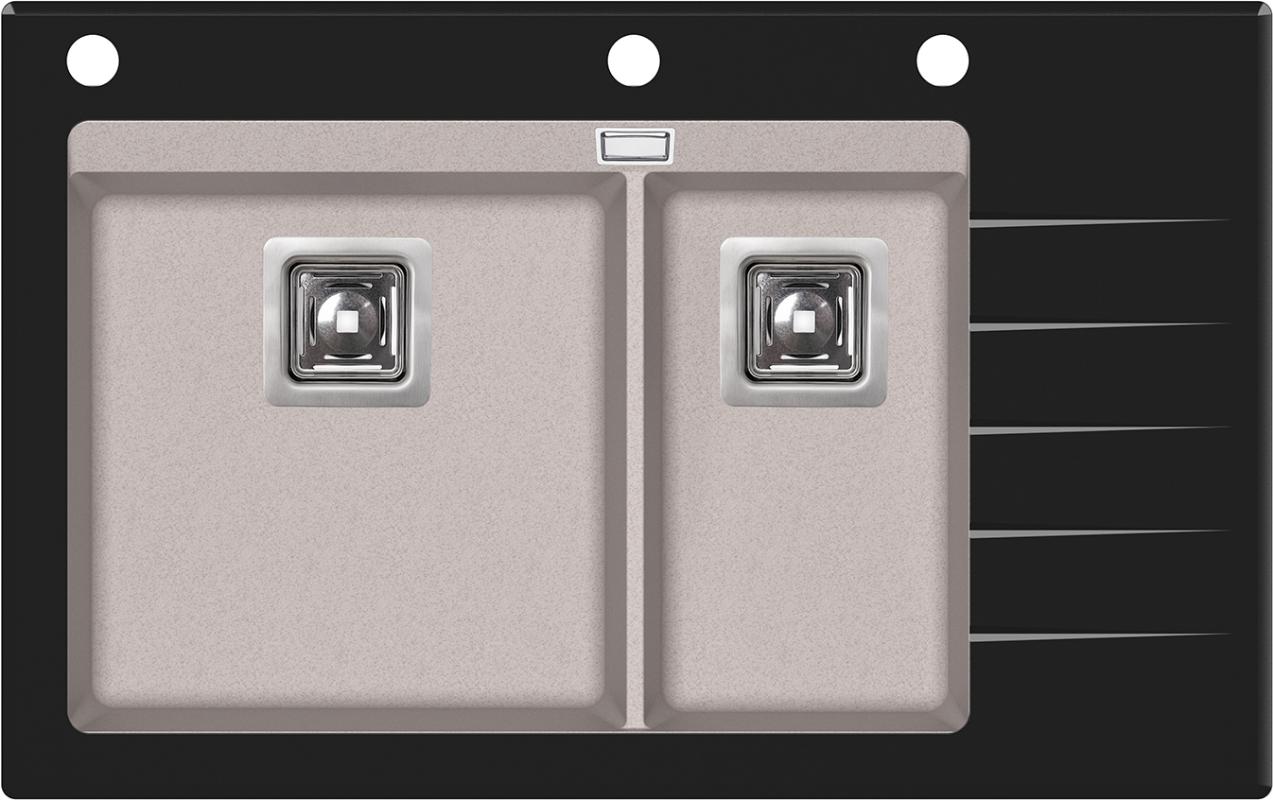 Кухонная мойка Aquasanita Delicia Plus SQD150AW/110B 86x54, врезная, бежевый, с чашами из искусственного камня Silicsana (80% кварцевого песка, 20% смесь смолы и наполнителя) и стеклянной полкой. Цвет: 110B-чаша: бежевый beige, стекло-черный black. Поверхность чаш-гладкая, непористая, антибактериальная с ионами серебра Ionpure Ag (+). Материал Silicsana устойчив к появлению пятен и воздействию моющих средств, высоким температурам и резкому перепаду температур, механическим и световым воздействиям. Стекло-закаленное, толщина-1 см. Глубина меньшей чаши-18 см. Минимальная ширина шкафа для установки-80 см. Изображение на мониторе может отличаться от оригинала. Комплектность: