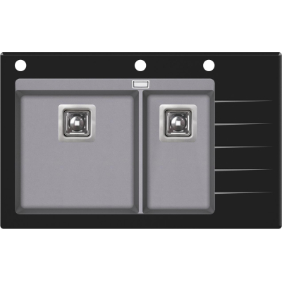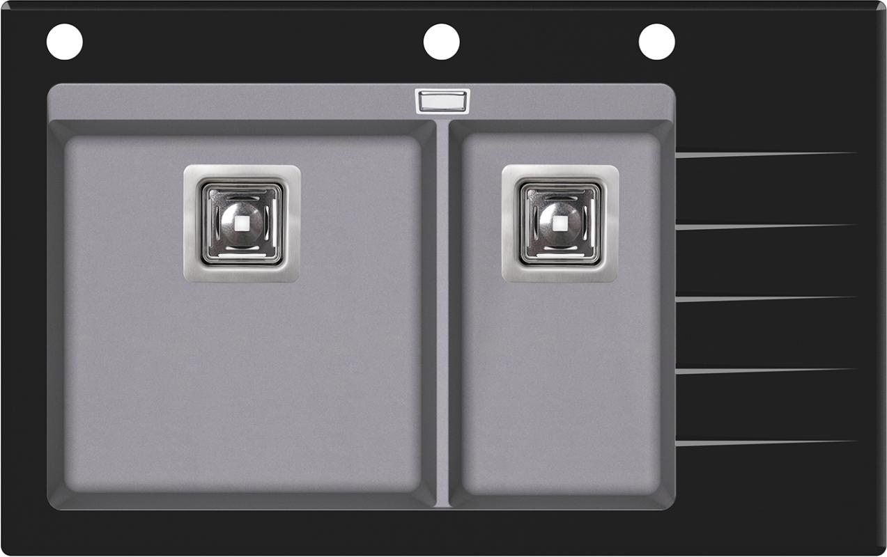 Кухонная мойка Aquasanita Delicia Plus SQD150AW/202B 86x54, врезная, алюметаллик, с чашами из искусственного камня Silicsana (80% кварцевого песка, 20% смесь смолы и наполнителя) и стеклянной полкой. Цвет: 202B-чаша: алюметаллик alumetallic, стекло-черный black. Поверхность чаш-гладкая, непористая, антибактериальная с ионами серебра Ionpure Ag (+). Материал Silicsana устойчив к появлению пятен и воздействию моющих средств, высоким температурам и резкому перепаду температур, механическим и световым воздействиям. Стекло-закаленное, толщина-1 см. Глубина меньшей чаши-18 см. Минимальная ширина шкафа для установки-80 см. Изображение на мониторе может отличаться от оригинала. Комплектность: