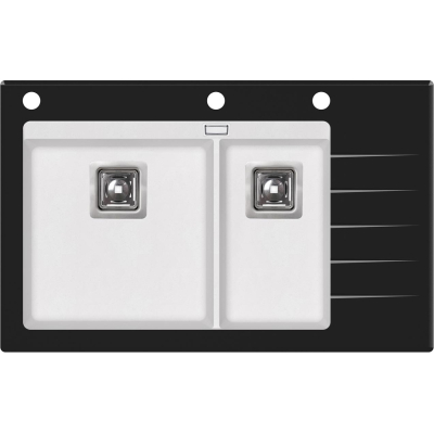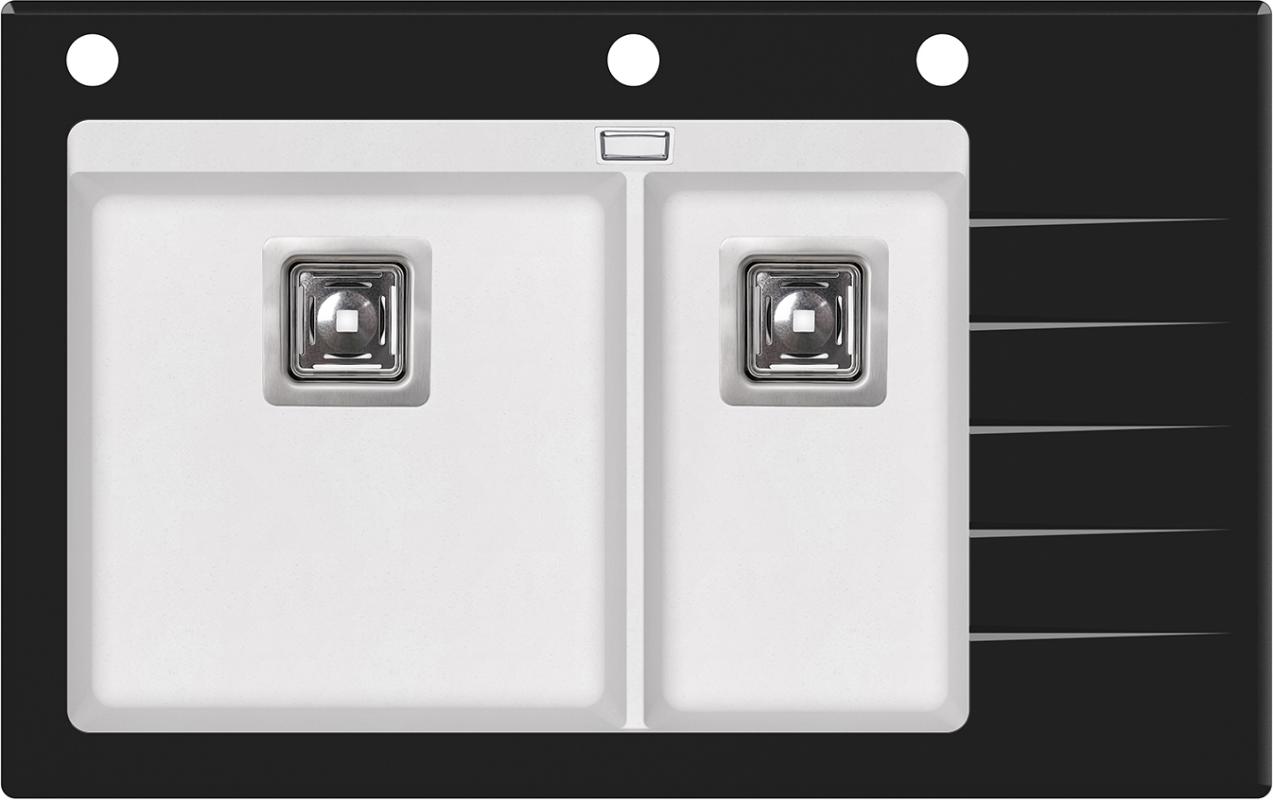 Кухонная мойка Aquasanita Delicia Plus SQD150AW/710B 86x54, врезная, альба, с чашами из искусственного камня Silicsana (80% кварцевого песка, 20% смесь смолы и наполнителя) и стеклянной полкой. Цвет: 710B-чаша: альба alba, стекло-черный black. Поверхность чаш-гладкая, непористая, антибактериальная с ионами серебра Ionpure Ag (+). Материал Silicsana устойчив к появлению пятен и воздействию моющих средств, высоким температурам и резкому перепаду температур, механическим и световым воздействиям. Стекло-закаленное, толщина-1 см. Глубина меньшей чаши-18 см. Минимальная ширина шкафа для установки-80 см. Изображение на мониторе может отличаться от оригинала. Комплектность: