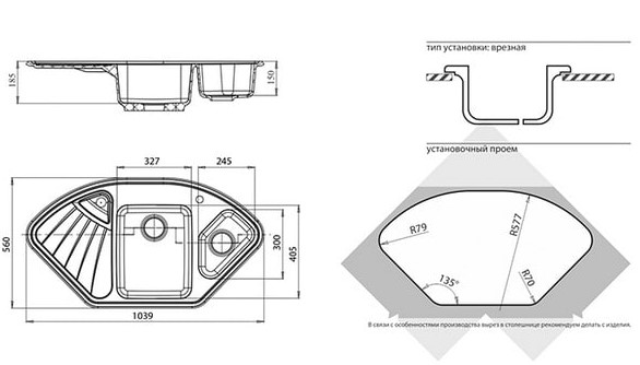 Кухонная мойка GranFest Corner GF-C1040E 104x57, врезная, песочный. Монтаж в базу 90x90 см. Глубина основной чаши-18.5 см, дополнительной-15 см. Изображение и цвет на мониторе могут отличаться от оригинала. Комплектность: