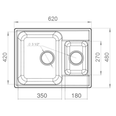 Кухонная мойка GranFest Quarz Z-09 62x48, врезная, черный. Глубина основной чаши-18 см, дополнительной-12 см. Мойка оборачиваемая. Изображение и цвет на мониторе могут отличаться от оригинала. Комплектность: