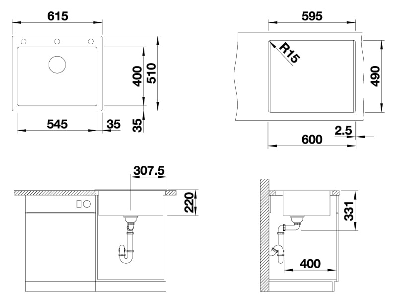 Кухонная мойка врезная Blanco Pleon 6 62x51 525953, черный. Монтаж в базу 60 см. Гигиеничный перелив C-overflow. Изображение и цвет на мониторе могут отличаться от оригинала. Комплектность: