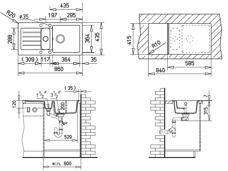 Кухонная мойка врезная Teka Kea 60 B-TG 86x44 40143359, карбон с клапаном-автоматом. Монтаж в базу минимум 60 см. Не монтировать вплотную к стене или другому модулю. Цвет на мониторе может отличаться от оригинала. Комплектность:
