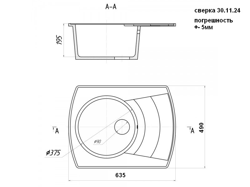 Мойка для кухни Gerhans A01 63.5x49, врезная, графит 24. Все характеристики |