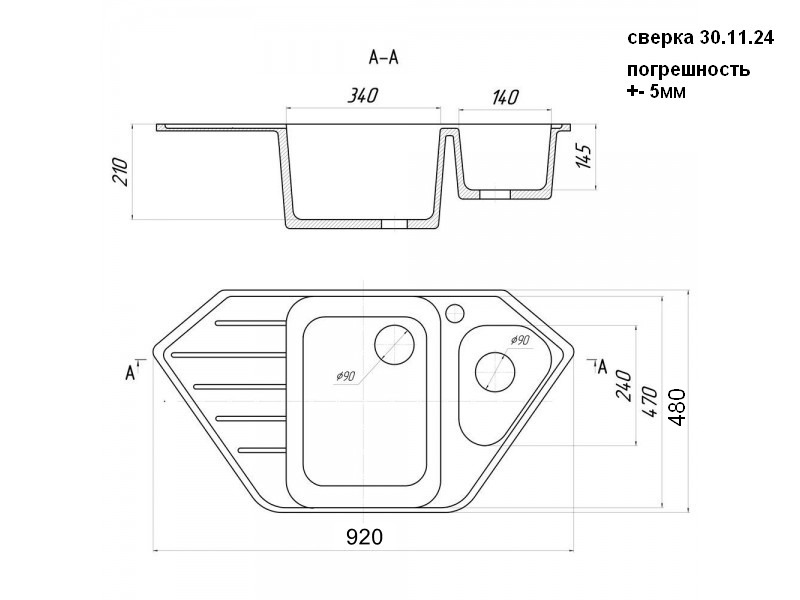 Мойка для кухни Gerhans E10 92x48, врезная, угловая, оникс 25. Все характеристики |