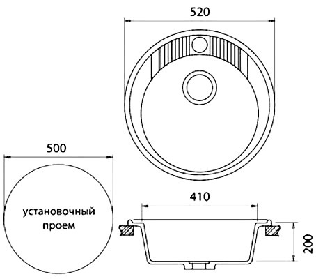Мойка для кухни GranFest Rondo GF-R520 52x52, врезная, черный