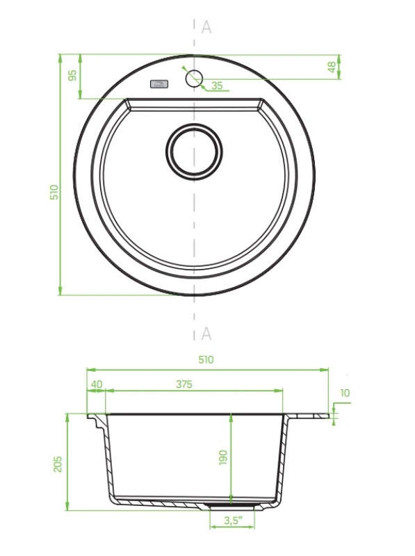 Мойка для кухни Laveo Dafne 51x51, врезная, SBD_780T, черный. Все характеристики |