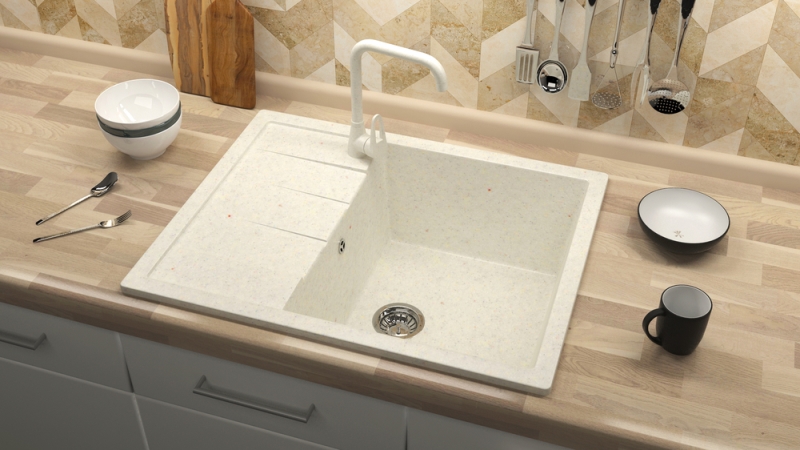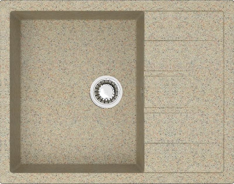 Раковина для кухни Marrbaxx Модель 151/Q7 64.5x50.5 F151Q007 врезная из литьевого мрамора Карельский камень.Свойства. Цвет - хлопок. Композит из натурального молотого гранита, мрамора или кварца 80% и полиэфирной (или акриловой) смолы 20%. Базовый наполнитель - кварцит из Германии. Степень твердости материала - 7 баллов из 10 по шкале Мооса. Высокая прочность и экологичность. Стойкость к воздействию агрессивных сред и ультра-фиолетовому излучению. Корррозийная, морозо- и влагоустойчивость. Стойкостью к вибрации и истиранию. Выдерживает температурные перепады в пределах - 40-+110 С° (при условии плавного перехода между крайними значениями). Кухонная раковина Модель 151/Q7 64.5x50.5 см F151Q007 из композитного камня для врезного монтажа. Производство. Компания Марбакс Русланд изготавливает долговечные сантехнические изделия из искусственного камня. Качественный состав материалов от проверенных поставщиков. Современный завод расположен в России. Изображение и цвет на экране могут отличаться от оригинала. Комплектность: