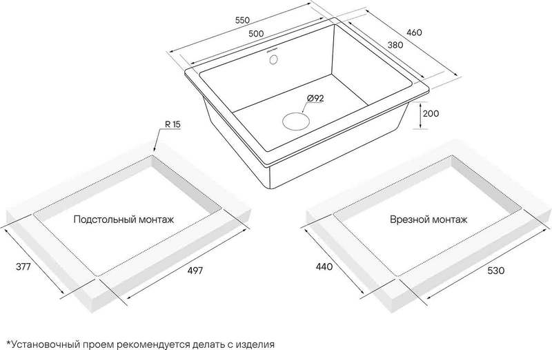 Мойка для кухни Paulmark Gera 60 55x46 PM205546-WH, под столешницу, белый. Все характеристики |