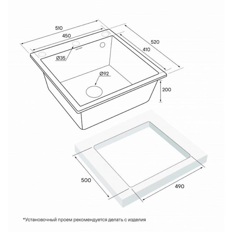 Мойка для кухни Paulmark Kante 50 51x52 PM105152-BL, врезная, черный